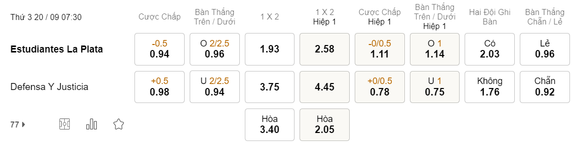 Tỉ lệ kèo Estudiantes vs Defensa Justicia