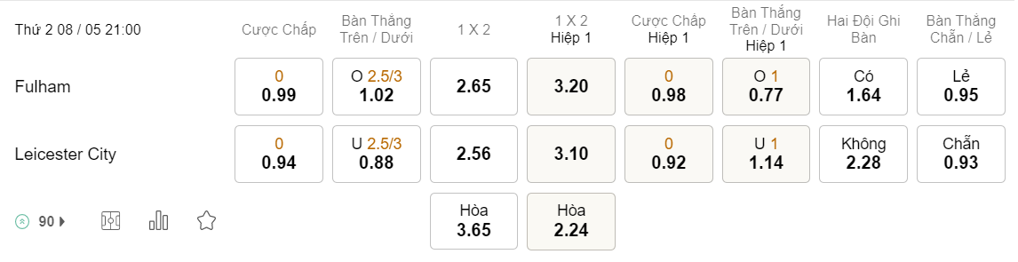 Soi kèo châu Á Fulham vs Leicester: 0.99*0*0.94