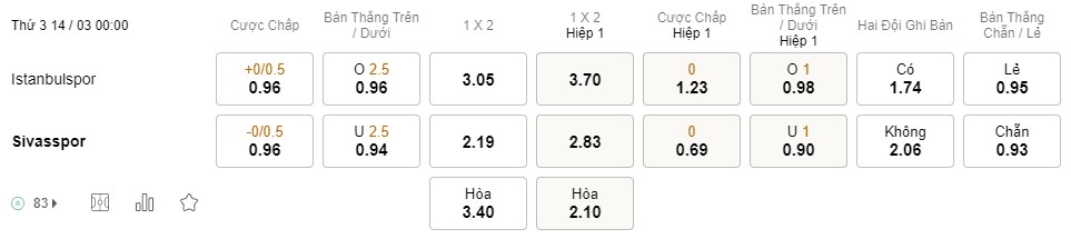 Soi kèo hiệp 1 Istanbulspor vs Sivasspor: 1.23*0*0.69
