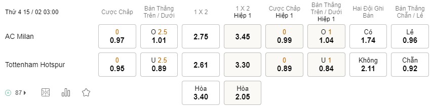 Tỉ lệ kèo Milan vs Tottenham
