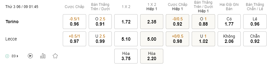 Soi kèo châu Á Torino vs Lecce: 0.96*0.5/1*0.97